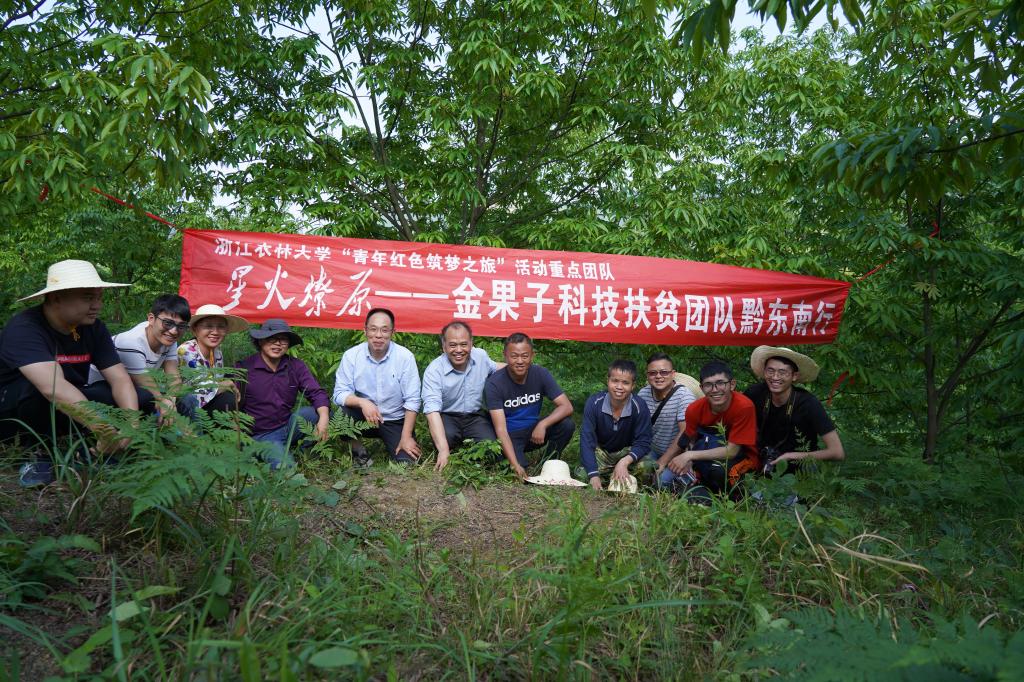 “发展产业是实现脱贫的根本之策”。为助力贫困红色老区——贵州黔东南地区山核桃产业的发展,解决当地百姓山核桃种植、低产林改造等一系列问题,延续、继承与发展新长征精神,更好地服务科技兴农和乡村振兴战略,4月23日,浙江农林大学星火燎原——“金果子”科技扶贫团队在林生院黄坚钦和王正加两位教授带领下,前往贵州黔东南锦屏县指导当地百姓进行山核桃低产林改造和施肥。