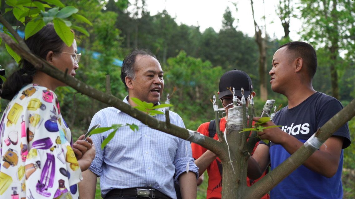 在锦屏县,“金果子”科技扶贫团队与当地山核桃种植农民专业合作社成员深入细致地讨论了目前锦屏县山核桃产业现状。合作社负责人谭传高拉着专家们的手说,目前基地山核桃在种植、加工过程中存在雌蕊多雄蕊少、病虫害威胁、加工工艺有待改进等问题,亟需得到农林大学专家们的指导。