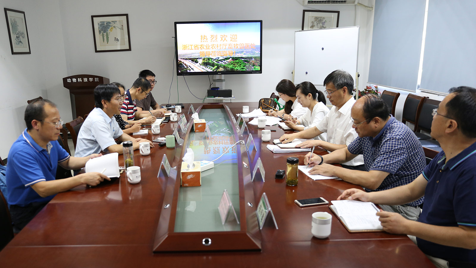 8月6日,浙江省农业农村厅畜牧兽医处顾剑明处长一行莅临我院动物健康检测中心检查并指导实验室生物安全和非洲猪瘟第三方检测实验室授权准备工作。杭州市畜牧兽医局和临安区畜牧兽医局相关负责人陪同进行了检查。动科院院长、检测中心主任宋厚辉进行了工作汇报。