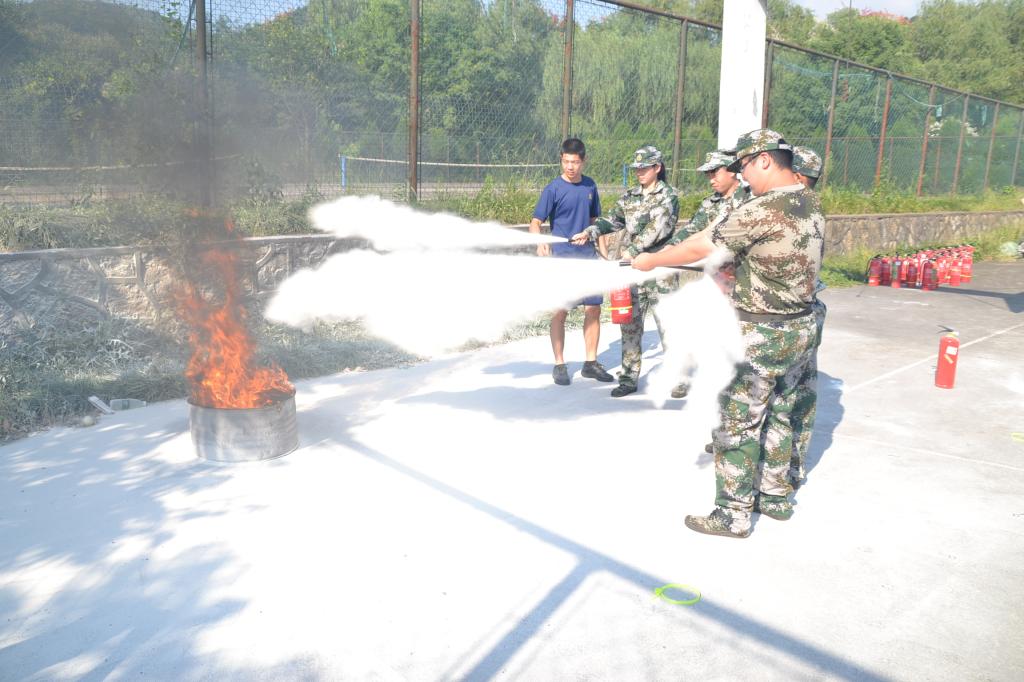 随后,军训新生以营为单位开展灭火体验,分批拿起灭火器,体验扑救初期火灾,同时也掌握了灭火器的正确使用方法。