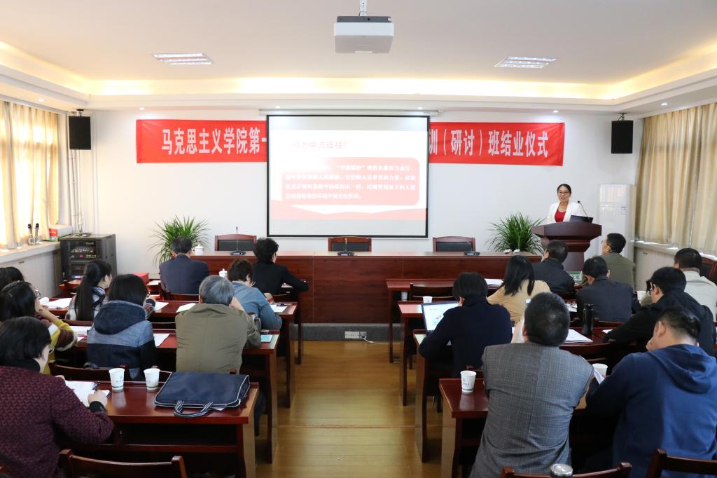 为深入贯彻习近平总书记在学校思想政治理论课教师座谈会上的讲话精神,推进学院“3.18”讲话“落地”培训活动获得实效,11月14日,马克思主义学院举办了第一期“3.18”讲话“落地”培训(研讨)班结业式。湖州师范学院社会发展与管理学院院长王伦光教授、学校督导组组长胡云江以及全国优秀教师雷家军教授应邀出席,学院领导、专兼职思政课教师及部分研究生和本科生参加了此次结业式。