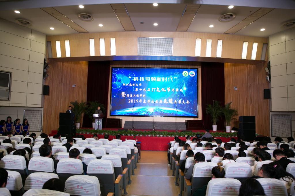 会议介绍了第十九届IT文化节开幕以来举办的活动情况和成效,并举行了2019年度创新先进表彰大会,相关部门负责人、学院领导、教师代表等为2019年度在一类、二类学科竞赛中获奖的信息学子颁奖。