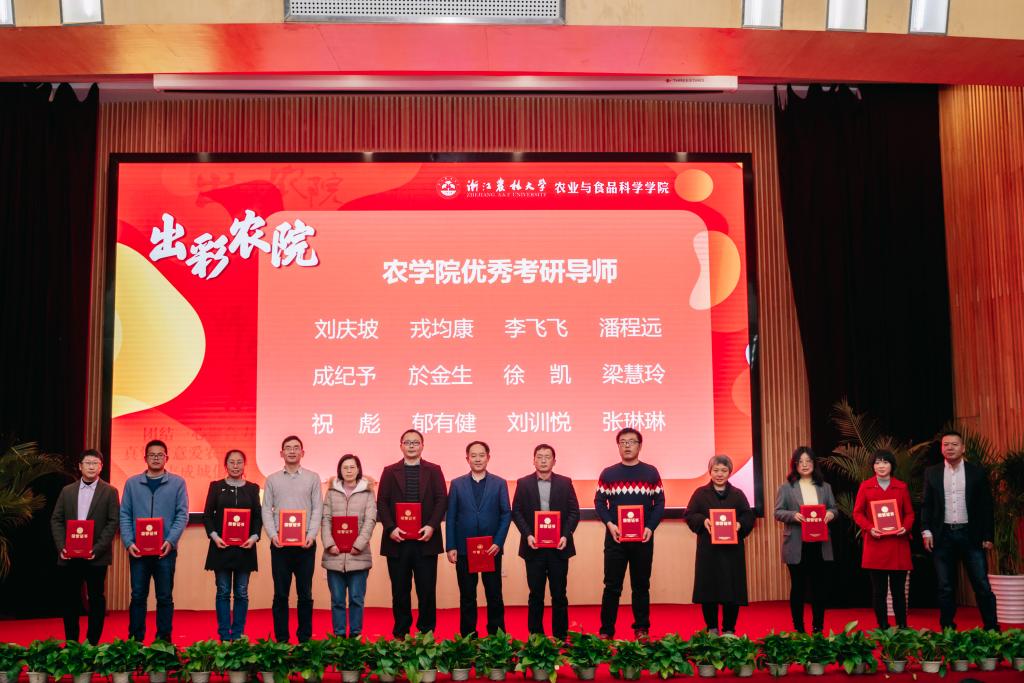 为积极营造“爱院、荣院、兴院、强院”工作氛围,切实增强学院师生荣誉感、使命感和责任感,坚定发展信心,凝聚发展共识,12月25日,农学院举行“出彩农院”2019年度师生表彰大会,隆重表彰2019年度农学院师生先进集体和个人。农学院名誉院长朱祝军,校社会合作处处长刘兴泉,丰岛控股集团有限公司董事长徐孝方,校研工部、科技处、丰岛控股集团有限公司相关负责人,农学院党政班子全体成员出席大会并为获奖集体和个人颁奖。