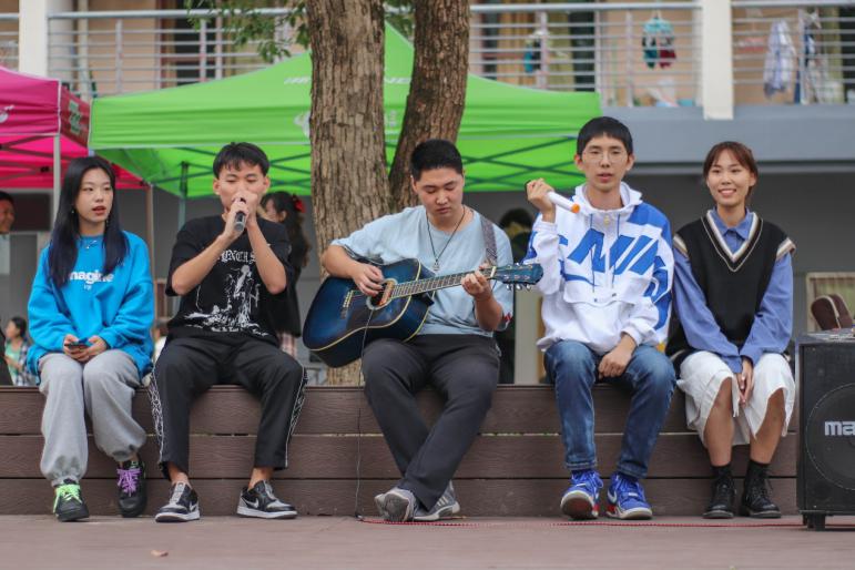 许多大一新生纷纷被“绿雅园地”的舞台吸引驻足,他们用手机记录下艺术的瞬间,还与校艺术团的同学们互动。“绿雅美育”活动使新生增加了对大学生活的美好憧憬与向往。