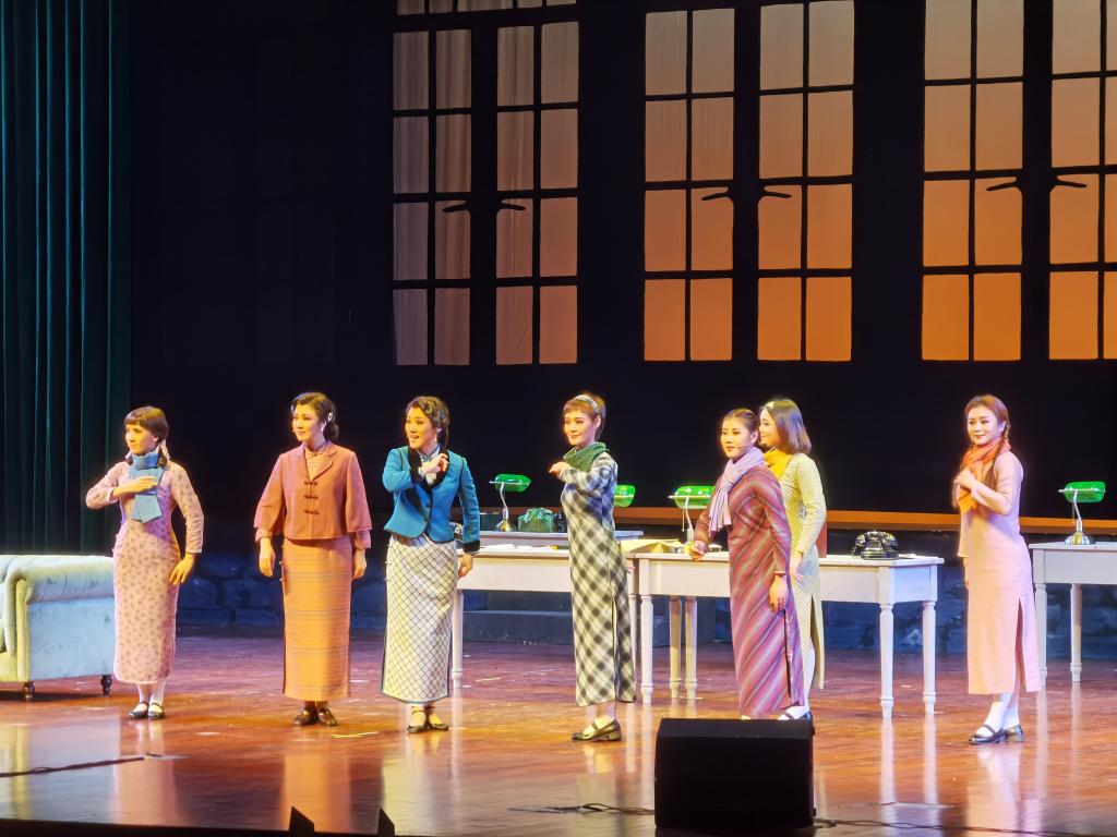 天地一片红,人间几多美。《黎明新娘》是一部红色题材“谍战”越剧现代戏。该剧讲述的是1939年冬,危机四伏的上海租界抗战女杰秦凤英为了完成为新四军筹备冬衣的秘密任务,毅然英勇就义,与爱人元乔诀别的感人故事。该剧深刻诠释了中华儿女为了抗战前线的胜利,民族的独立解放,坚持奋斗在大后方,甚至献出了年轻的生命的伟大革命精神,是一部充满现代审美感染力量的越剧。激昂的音乐,遒劲有力的动作,强烈的时代审美,精彩的舞台呈现,艺术家们以当代文艺工作者独有的方式,为全校师生带来了一场别开生面的爱国课,深深感染了在场的每一位观众,谢幕掌声久久不歇。
