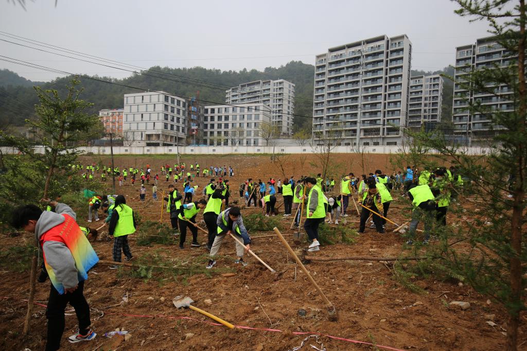 在现场工作人员的带领下,青年志愿者们拿起铁锹、拎起锄头、扛起树苗,共赴这场“春天的约会”。活动现场,志愿者们或两人一组,或三五成群,各司其职、互相配合,通过定点放苗、挥锹铲土、扶正树苗、夯实新土,有序地开展植树活动。大家的干劲十足,合力栽下一株株树苗,处处呈现出一派热火朝天的忙碌景象。