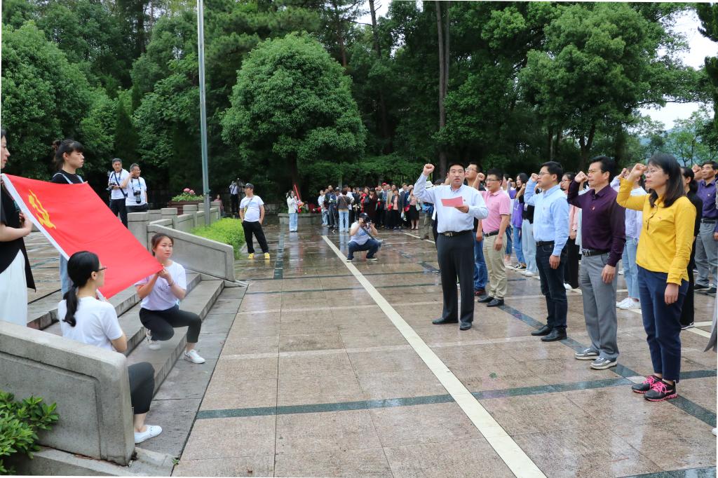 为庆祝中国共产党成立100周年,回顾党的光辉历程,弘扬革命精神,日前,后勤集团(后勤服务中心)党委书记郑本军带领全体党员赴余姚四明山等开展“永续传承·牢记使命”主题党日活动,实地重温党的光辉历史,缅怀革命先烈。