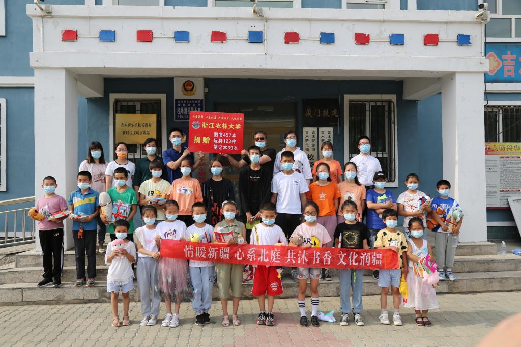5月20日,书籍跨越3666公里到达了新疆昌吉州吉木萨尔县吉木萨尔镇校场湖村。5月29日下午,新疆维吾尔自治区昌吉回族自治州吉木萨尔县人民政府办公室“访惠聚”工作队于校场湖村委会会议室举办了赠书仪式。吉木萨尔县政府办公室驻校场湖村工作队队长、第一书记张立炜向大家介绍了浙江农林大学捐助活动的情况,同时,我校校友方萌分享《致新疆昌吉州吉木萨尔县吉木萨尔镇校场湖村孩子们的一封信》。张立炜向校场湖村中小学生代表捐赠图书、文具;校场湖村党支部副书记、治保主任芦志清向校场湖村幼儿代表捐赠图书、玩具;方萌代表学校向校场湖村农家书屋捐赠图书。