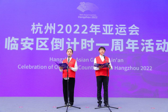 9月10日,杭州2022年亚运会倒计时一周年暨临安区倒计时装置揭幕仪式举行,临安区委书记童定干,区委副书记、区长、临安区亚运场馆运行团队指挥长杨国正等相关区领导出席仪式。我校大学生周骞、李森浩作为志愿者代表宣读亚运志愿者倡议书。