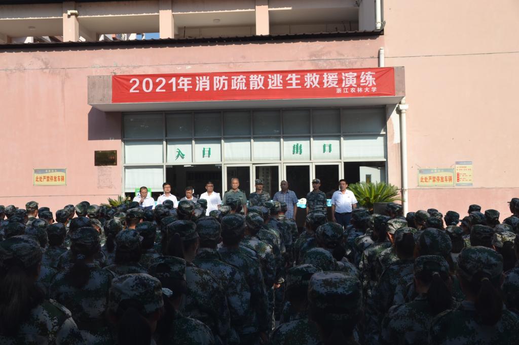 9月23日,学校在东湖校区组织开展2021年消防逃生疏散救援演练活动。本次演练由校综治委主办,校军训师副师长周拥武、临安区消防救援站相关负责人,学工部、设备处、公管处、保卫处、后勤服务中心等相关负责人出席开幕式。