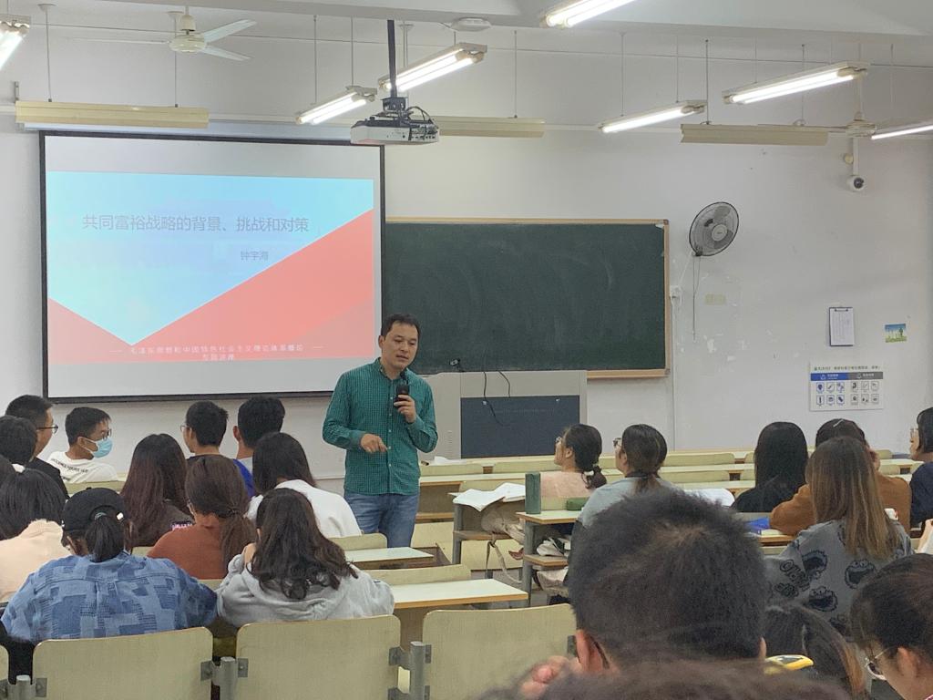 丁峰老师以《扎实推进共同富裕》为题,讲述了新发展阶段促进共同富裕其意义十分重大,介绍了把握促进共同富裕的指导思想和基本原则,对实现共同富裕的路径进行了探析。