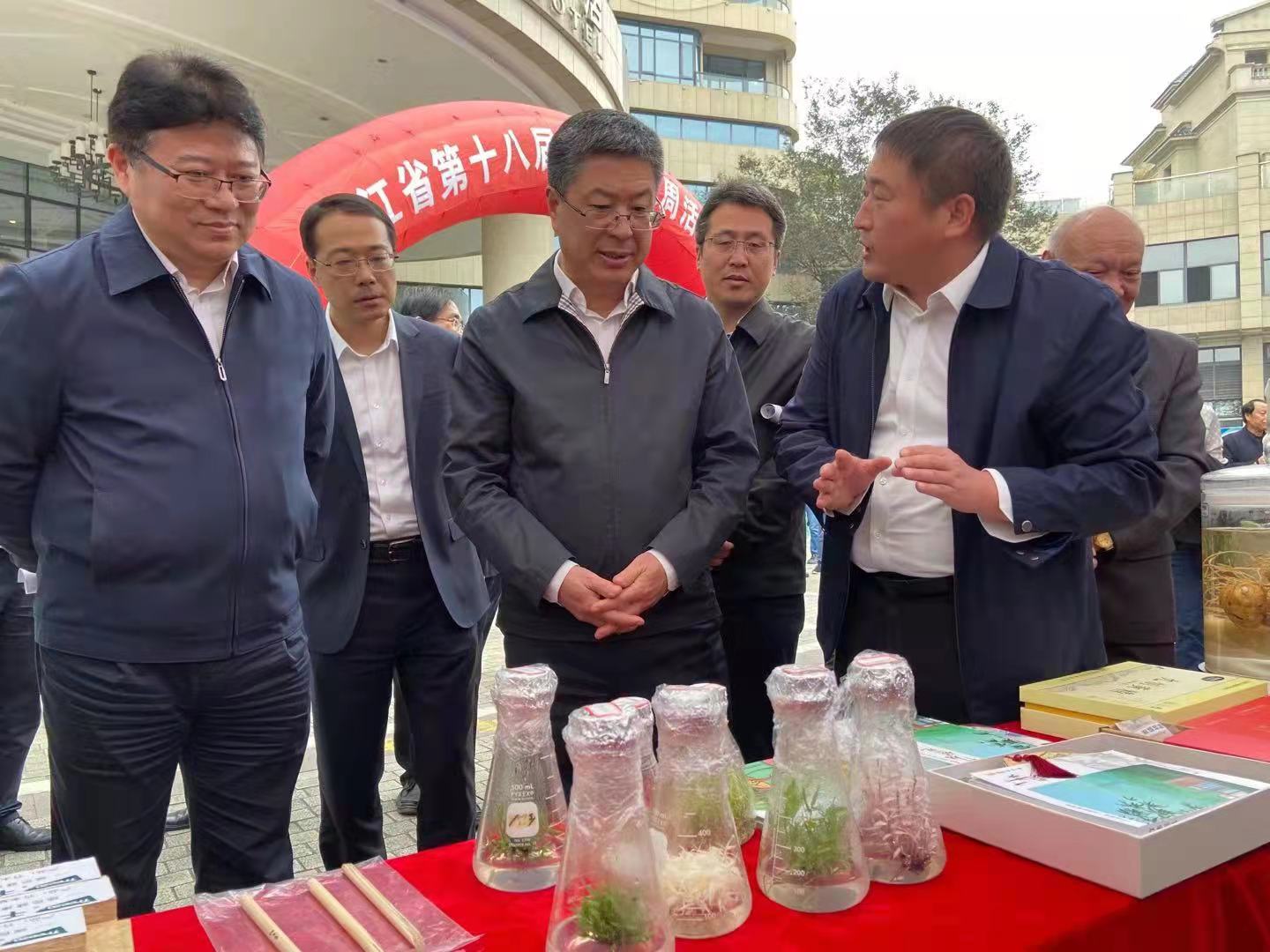 在成果展区,我校亚热带森林培育国家重点实验室、国家林业和草原局竹林碳汇工程技术研究中心、国家林业局香榧工程技术研究中心、国家林业局铁皮石斛工程技术研究中心、黄精产业国家创新联盟等创新平台的多项成果进行了现场展示,国家林草局副局长彭有冬、原浙江省人大常委会副主任程渭山等领导一行参观了我校的相关成果。