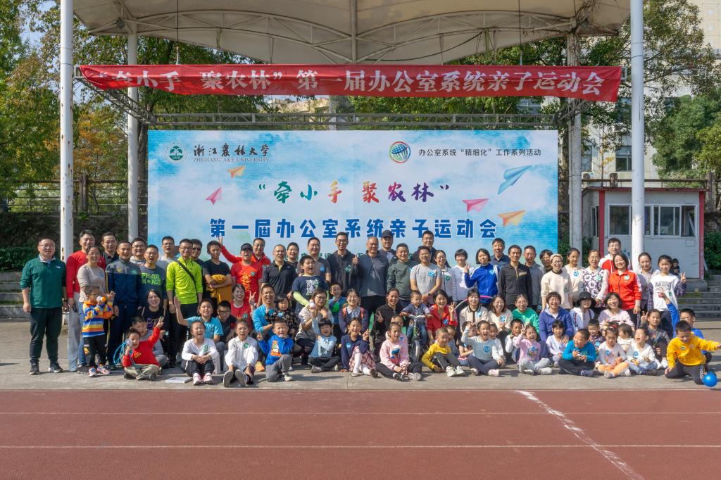 10月30日上午,由校办、校工会、体军部联合主办的办公室系统第一届教职工亲子趣味运动会在b区操场展开。本次运动会以“牵小手·聚农林”为主题,吸引50余个家庭、100余位家庭成员共同参与,根据小朋友的年龄被分成少儿组(6岁及以下)和青少年组(7岁及以上)两大组别。