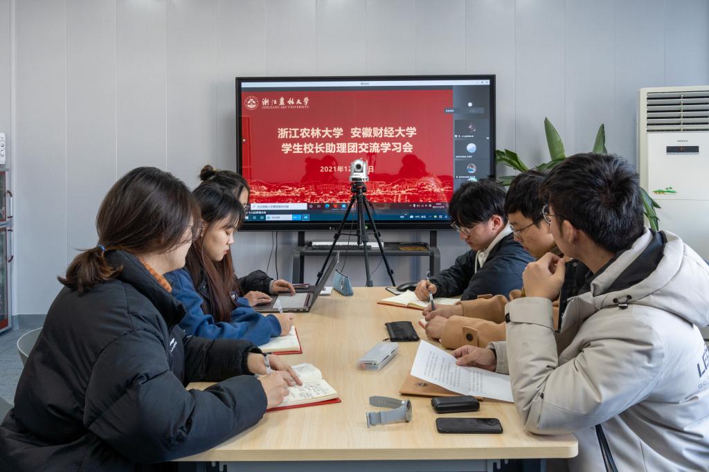为推动学校民主管理,增进与各高校的沟通联系,加强学校首届学生校长助理团队伍建设。12月19日,我校与安徽财经大学开展学生校长助理团(以下简称“校助团”)线上交流会,我校校助团部分成员参加会议。