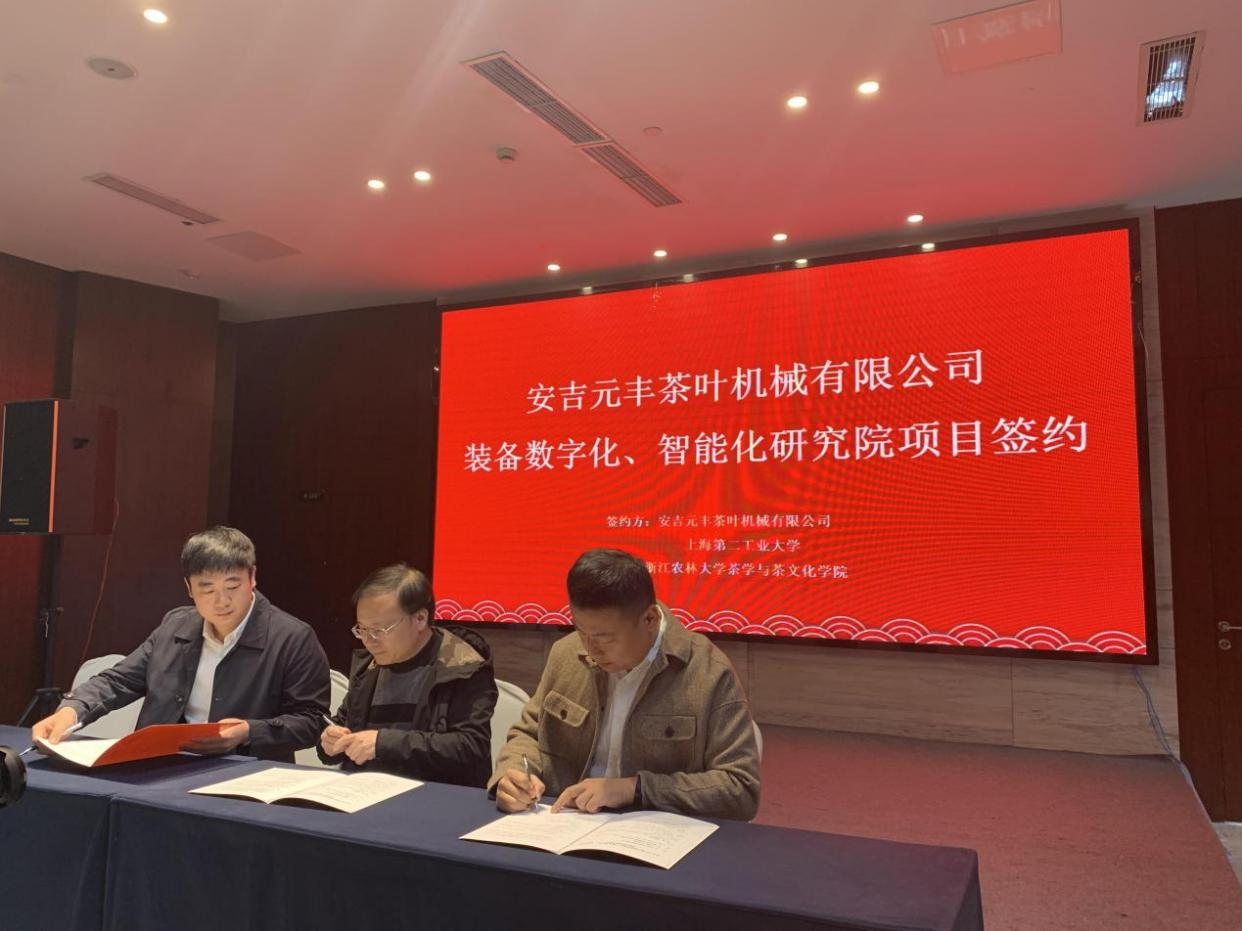 11月17日,茶学与茶文化学院院长童再康代表学院与安吉龙王山茶叶开发有限公司、安吉元丰茶叶机械有限公司签署了校企战略合作协议。同时,学院与安吉元丰茶叶机械有限公司、上海第二工业大学签署了安吉元丰茶叶机械有限公司装备数字化、智能化研究协议。
