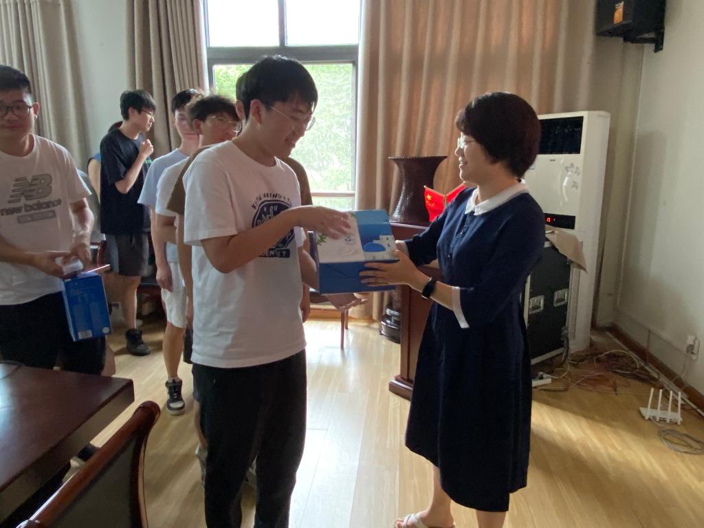 最后,谢志新和学院相关负责人为考研学子送上牛奶和文具。学子们收到精心准备的礼物后纷纷表示会加油拼搏,不辜负老师的期待。