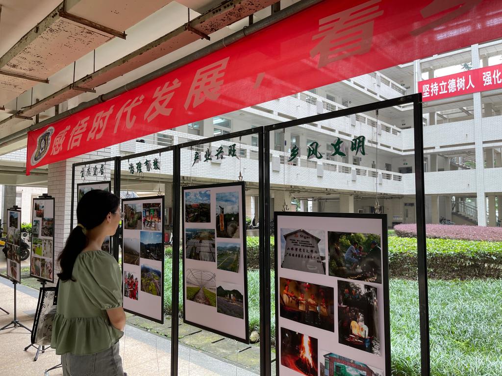 照片展收集了展现各地区落实乡村振兴战略的新成就、新进展、新风貌的动人照片,设置乡村巨变、乡村旧貌、产业兴旺等7个板块。200余幅照片分为2个单元16组,通过前后对比和横向对照,全景式展现中国共产党始终坚守初心使命,领导人民消除绝对贫困的艰辛历程。照片重点展示了浙江地区乡村振兴引领示范成果,展现出以习近平同志为核心的党中央巨大的政治勇气和强烈的使命担当。师生积极参展、看展,热议我国实施乡村振兴战略以来发生的翻天覆地变化。