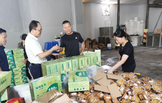 来到於潜镇千茂村的临安忆鲜食品有限公司时,该公司负责人与几位员工正在进行产品封装等工作,现场一片繁忙景象。该公司以当地丰富的竹笋资源为依托,以生产各式即食鲜笋加工食品为主,采用网络直播售货的方式进行销售,因品质鲜美、价格实惠、服务周到,颇受广大消费者喜爱,已新晋为临安网红产品。在交流中,企业主对长期以来浙江农林大学特派员无私到位的技术支持与营销指导等深表感谢。学院相关负责人关心询问了该厂加工与销售情况,并就企业生产、销售和新产品研发过程中已经和可能遇到的问题给予了现场指导与回应。