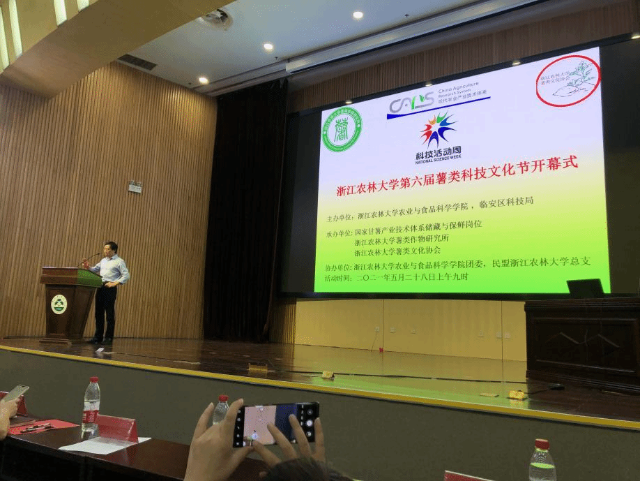 本次活动邀请了校薯类作物研究所所长陆国权老师、副所长杨虎清老师和副所长庞林江老师依次带来关于“薯类作物特点及其重要性”、“甘薯史话”和“薯类产业现状与重要研究进展”的知识分享。