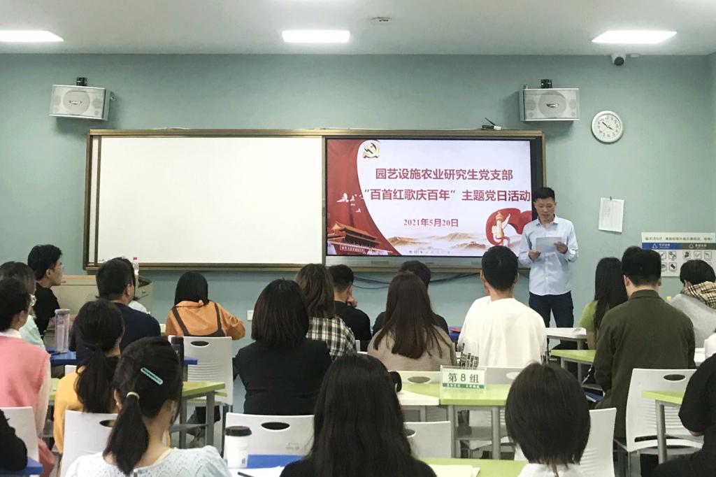 为庆祝中国共产党成立100周年,进一步深入开展党史学习教育,近日,园艺设施农业研究生党支部组织开展“百首红歌庆百年”知识竞赛主题党日活动。支部全体党员、入党积极分子及入党申请人参加活动。
