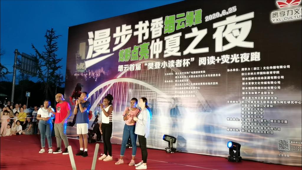 近日,缙云首届“樊登小读者杯”阅读+荧光夜跑活动在缙云绿道隆重举行。我校来自俄罗斯、赞比亚、津巴布韦等国家的国际生受邀参加表演,进一步感知中国传统文化,体验当地民风民俗,促进了中外文化交流。浙江经视和缙云当地媒体对此进行了报道。