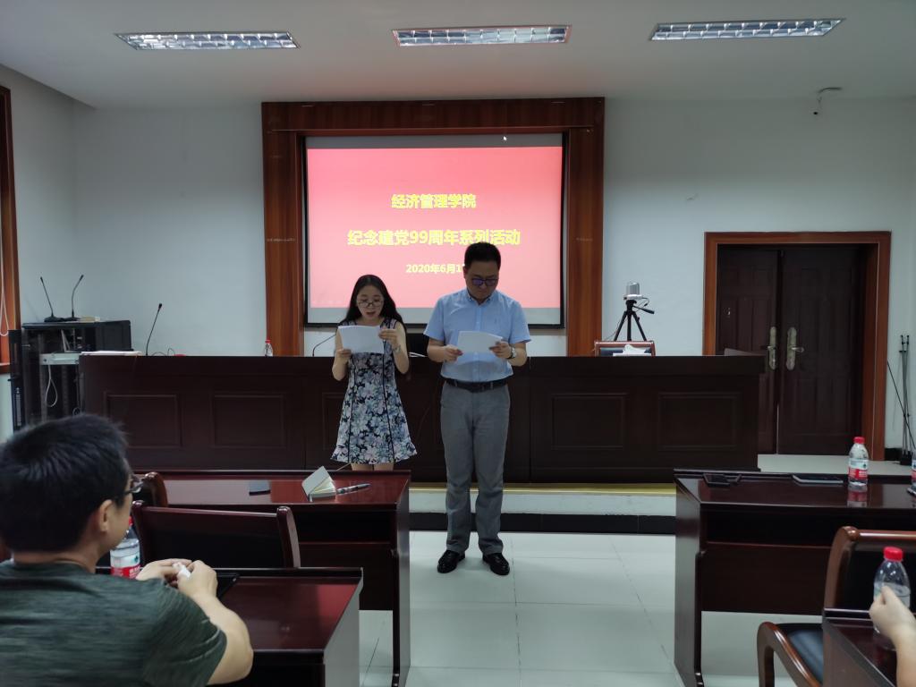 近日,为庆祝中国共产党成立99周年,深入学习贯彻全国两会精神和习近平总书记浙江考察重要讲话,经管学院全体师生党员通过线下与线上相结合的方式开展专题党课、重温入党誓词、诗歌朗诵、红歌传唱、困难党员慰问等系列活动。