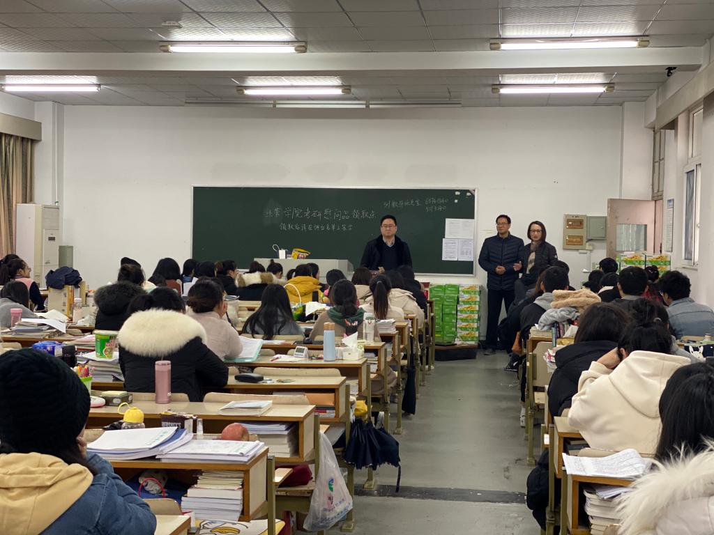 学院相关负责人就近年来的考研趋势以及本校的考研情况与同学们做了介绍。本学期针对考研教室座位不足的情况,经管学院向学校申请了新的考研自习室并已投入使用。他表示学院将会认真听取广大同学心声和诉求,做好服务工作,全心全意帮助同学们解决问题,让同学们可以心无旁骛地认真备考。