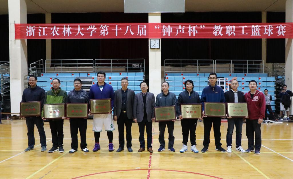 11月13日晚,浙江农林大学第十八届“钟声杯”教职工篮球赛在东湖校区风雨操场落下帷幕。比赛由浙江农林大学工会主办,工会体育工作委员会、篮球协会、体军部承办,共有15支代表队参加,180余名教职工参赛。