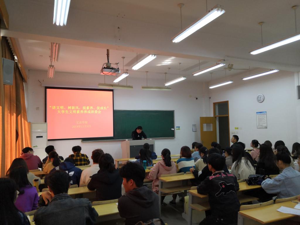 11月4日—12日,文法学院积极响应学校“讲文明、树新风,提素养、促成长”大学生文明素质养成号召,相继召开主题活动动员会、全院班委大会、专题会议、主题班会,先后举办书香寝室大赛、主题辩论大赛等。通过多种形式,聚焦“三个文明”建设,聚焦学生文明素质养成。