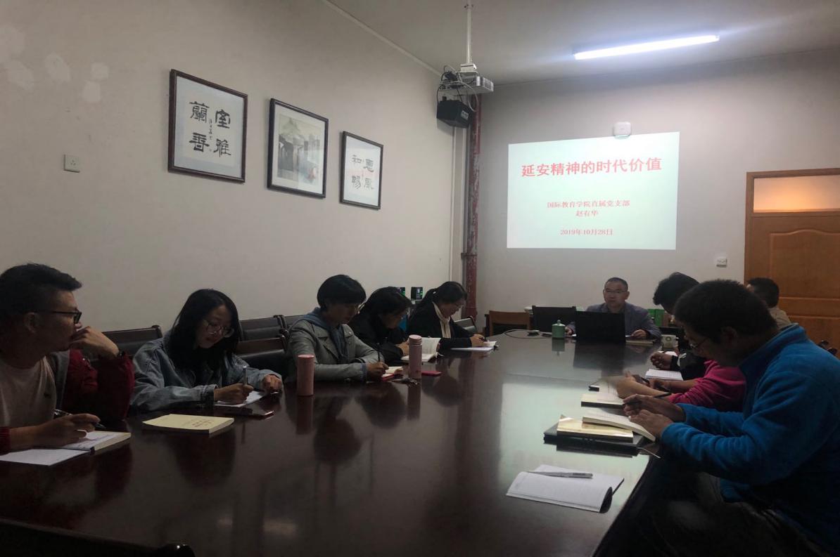 根据学校和学院“不忘初心、牢记使命”主题教育的统一部署和安排,10月28日晚,国教学院直属党支部举办“不忘初心、牢记使命”主题教育专题党课,党课由学院直属党支部书记赵有华讲授,学院全体党员参加。
