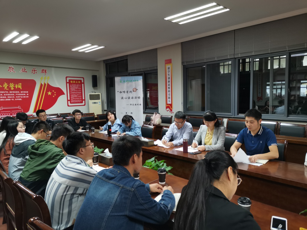 10月23日晚上,理学院举行第一期“咖啡有约”师生面对面谈心谈话活动,学院党委书记洪昀、教师代表和2019级全体研究生参加了活动。