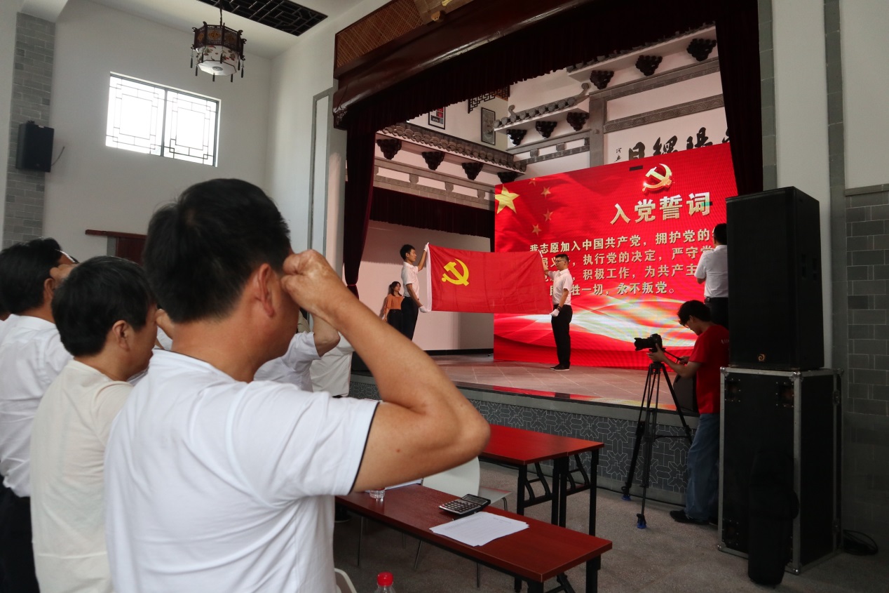 实践团参加了湍口镇庆祝中国共产党成立98周年暨“七一”表彰大会。在会议结尾全体党员面对党旗宣誓,并唱响《没有共产党就没有新中国》。
