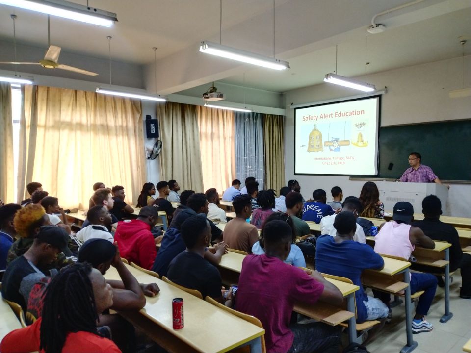 国教学院召开安全与禁毒教育大会,锦北派出所警官,学院相关教师,ISU学生干部、班长、学生代表参加会议。赵有华老师给国际生做了一场安全与禁毒教育专题讲座,他希望国际生远离毒品、校园贷、套路贷,提高安全防范意识和遵纪守法的意识,认真在华学习,做中外交流的使者。沈警官强调,国际生校外住宿时切勿扰民,与当地居民和谐共处。