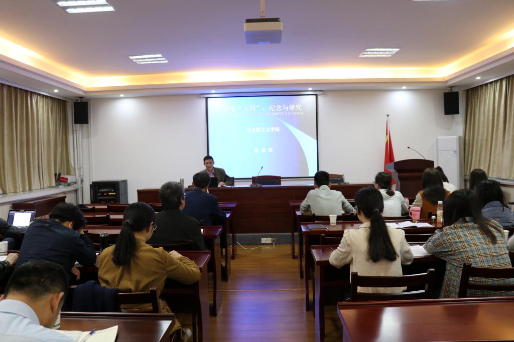 此次活动邀请了全国优秀思政理论课教师雷家军教授作题为“百年‘五四’:纪念与研究——学习习近平总书记《在纪念五四运动100周年大会上的讲话》”的专题讲座。雷家军教授首先引用习近平总书记在《纪念五四运动100周年大会上的讲话》内容揭示本次专题讲座的思想主题;接着从“印象五四”“历史五四”“精神五四”“学术五四”四方面阐述了五四运动的历史意义和时代价值;最后对多位学者关于五四运动及五四精神的观点进行了学术分析。