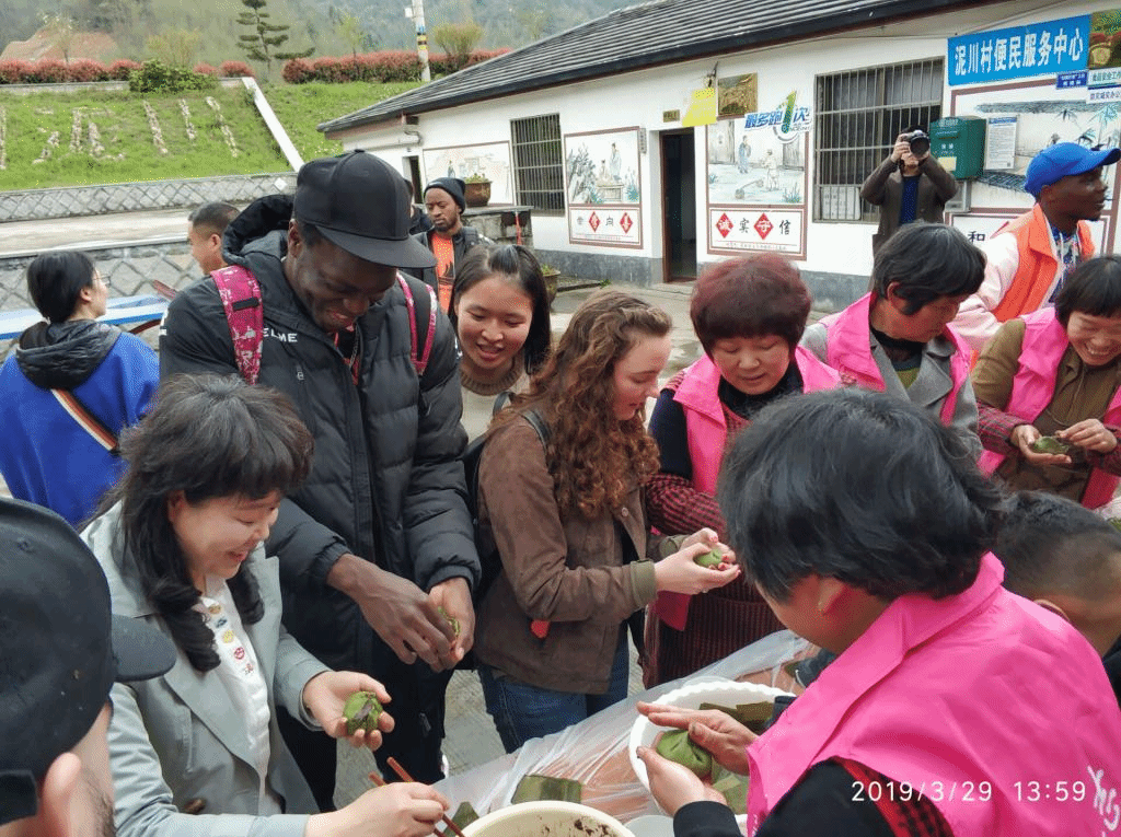 3月29日,我校来自美国、乌克兰、塞尔维亚、哈萨克斯坦、赞比亚、津巴布韦、刚果布、印度尼西亚等国家的22位国际生到锦北街道泥川村参加第八届青果节,体验中国传统节日——清明节民俗活动。