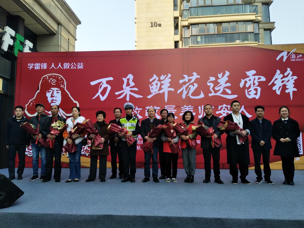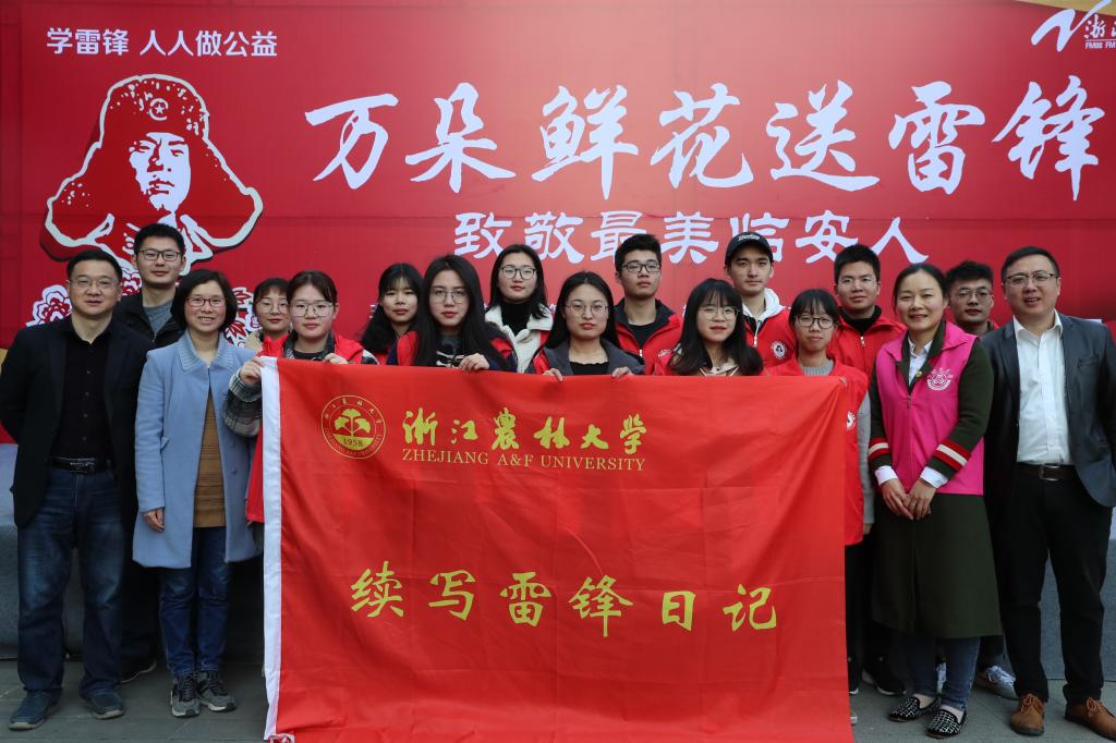3月13日上午,我校雷锋班成员参与了由中共杭州市临安区委宣传部、区文明办、团区委、区广播电视台联合开展的2019“万朵鲜花送雷锋”致敬最美临安人集体送花仪式。