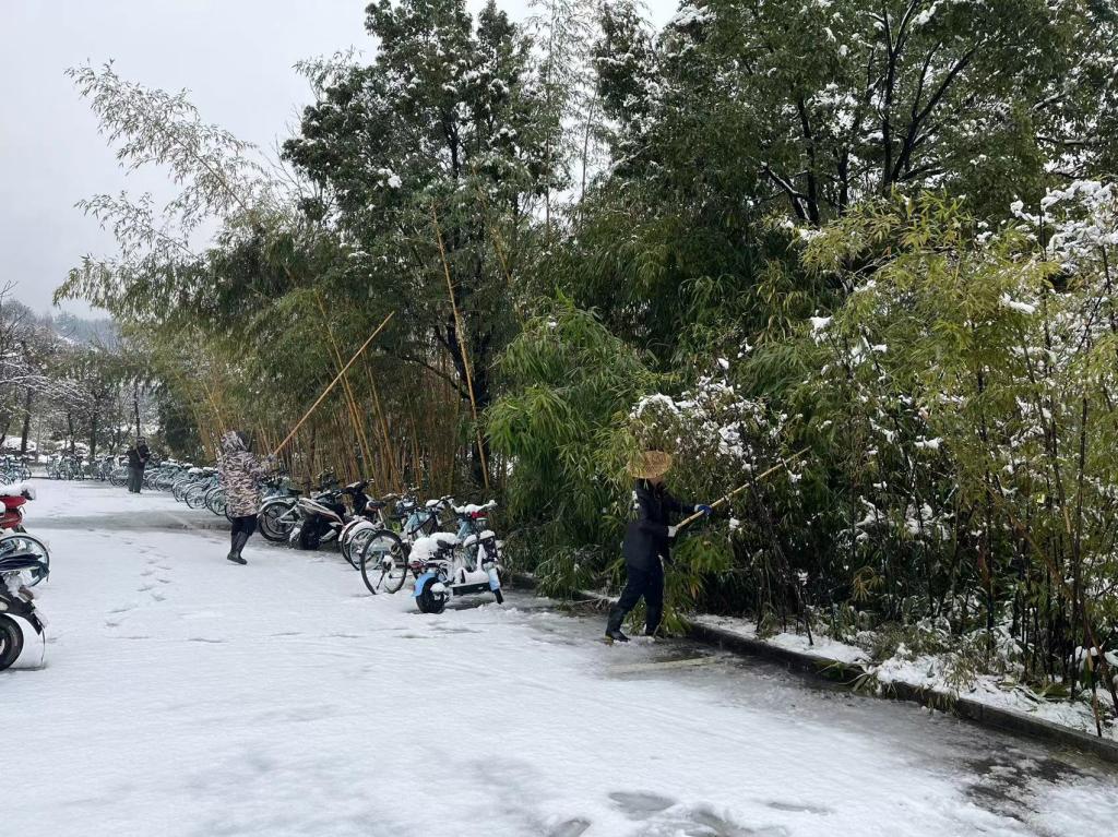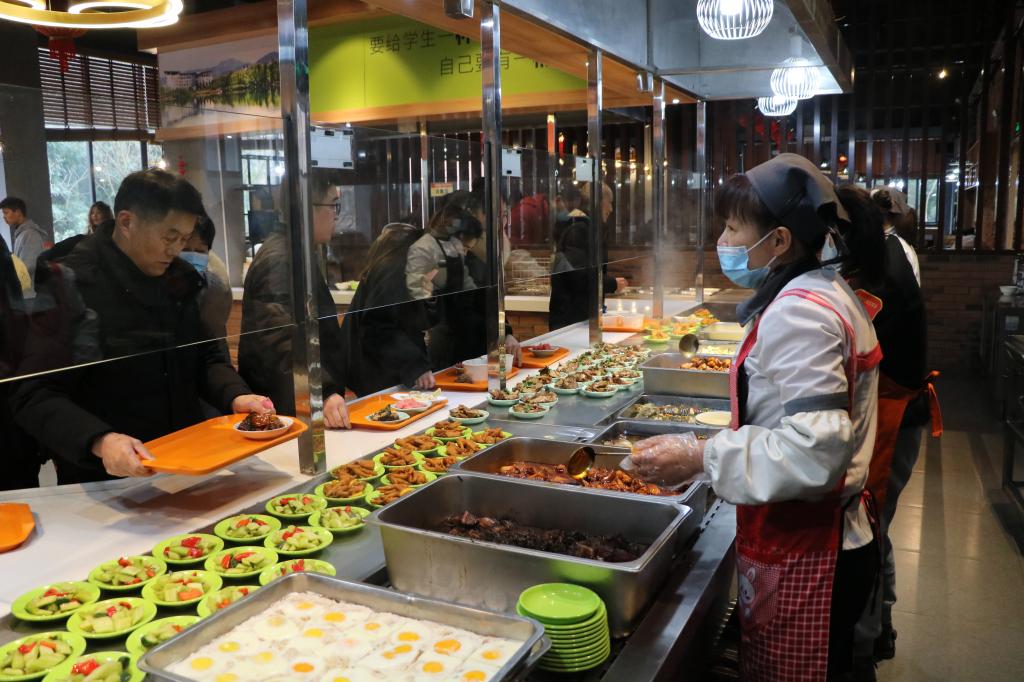 坚守岗位做好后勤保障。为保证寒假留校师生的后勤服务需要,后勤服务中心提前部署、合理安排,各单位积极落实值班制度,确保寒假服务保障不掉队。公寓中心全过程、全方位做好服务工作,妥善安排好因有特殊情况不能返乡过年学生的住宿问题,加强对留校寝室的安全内务检查监督,及时排除寝室安全隐患。今年的大雪为师生出行带来不便与风险,物业中心做好雨雪天气树木积雪的清理,防范大雪压断树木,及时清扫校园主干道、出入口积雪,确保师生正常出行。餐饮中心确保寒假菜肴品种不减,质量不降,精心策划推出多项除夕夜餐饮保障举措,给师生带去家的温暖。接待中心对各会场的音控设备等进行检修与保养;车队安排驾驶员整装待命,为师生提供用车服务;银杏餐厅完成维修改造收尾工作。商贸中心商超、快递和供水服务照常,并利用寒假时间对C6超市进行改造,搬迁E3菜鸟驿站至改造扩建的E1菜鸟驿站。文教中心积极做好文印服务保障。修建中心对报修工作做到“小事不过夜,大事有交代”,完成维修报修80余次;利用假期完成16个配电房的检修工作;加紧推进E1菜鸟驿站、A区充电桩改造等工程。卫保中心医务人员做好24小时应急值守工作。拓展中心做好外拓单位服务保障工作。采购部集中采购大米、食用油、工具、洗涤用品等各单位寒假及新学期物资。