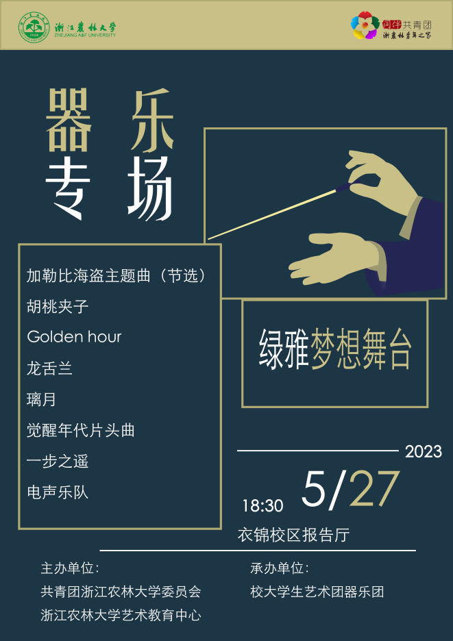 活动主办:共青团浙江农林大学委员会、浙江农林大学艺术教育中心