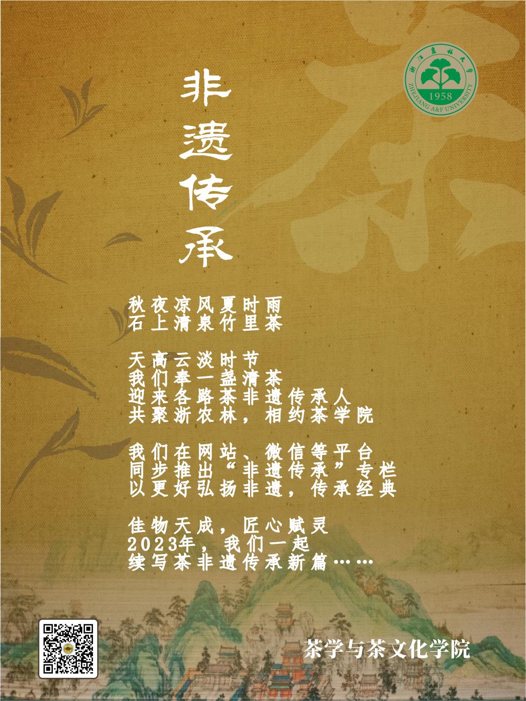 为贯彻落实由国家文化和旅游部、教育部、人力资源与社会保障部共同启动的“中国非物质文化遗产传承人研修培训计划”,进一步提高非遗项目持有者、从业者等传承人群的传承和实践能力,提升“中国传统制茶技艺及其相关习俗”项目的系统性保护水平,积极推进做好“茶申遗的后半篇文章”,浙江农林大学主办的2023年“中国传统制茶技艺及其相关习俗传承人研修班”将于9月1日正式开班。