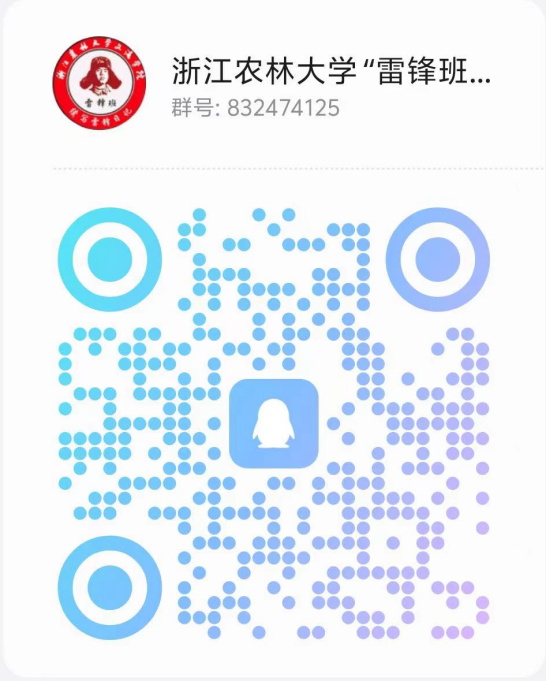 报名方式:本次招募采取自愿报名的方式。请报名同学于2024年9月13日20:00之前扫描二维码加入换届招新群,并扫码填写【腾讯文档】浙江农林大学“雷锋班”换届报名信息登记表,面试时间地点另行通知(后续通过QQ群832474125通知)。
