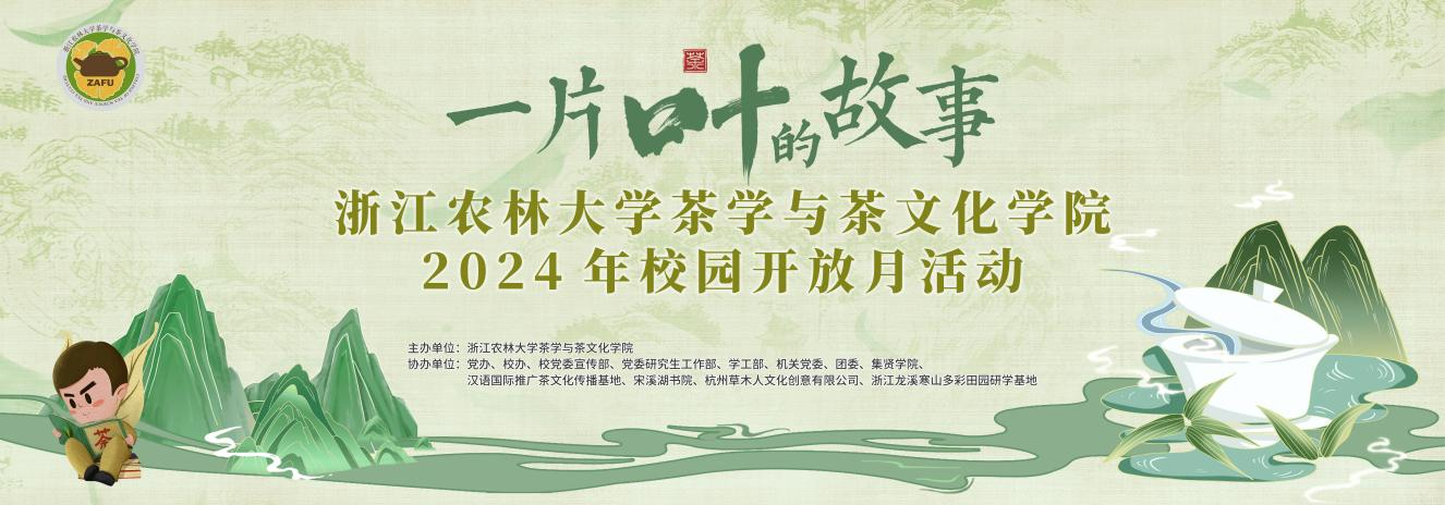 为深入践行“三茶”统筹发展理念,认真落实《浙江省历史经典产业高水平传承高质量发展若干政策举措》要求,弘扬“精行俭德”茶精神,呈现浙江农林大学茶学与茶文化学院“茶人才培养”“茶科学研究”“茶平台建设”“茶文化传播”的成果,特举办“一片叶的故事”浙江农林大学茶学与茶文化学院校园开放月活动。具体活动方案如下: