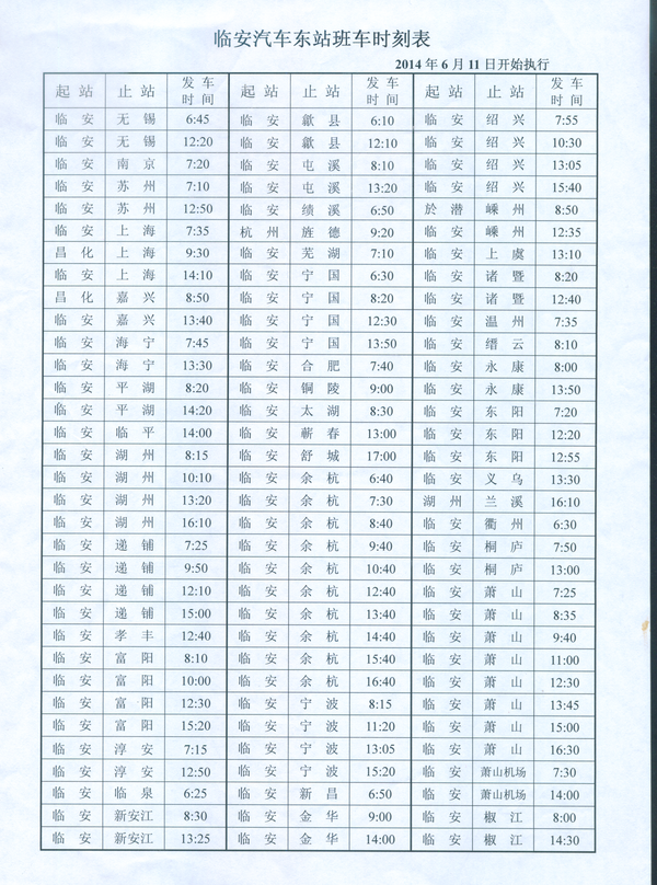 附件:临安汽车东站班车时刻表
