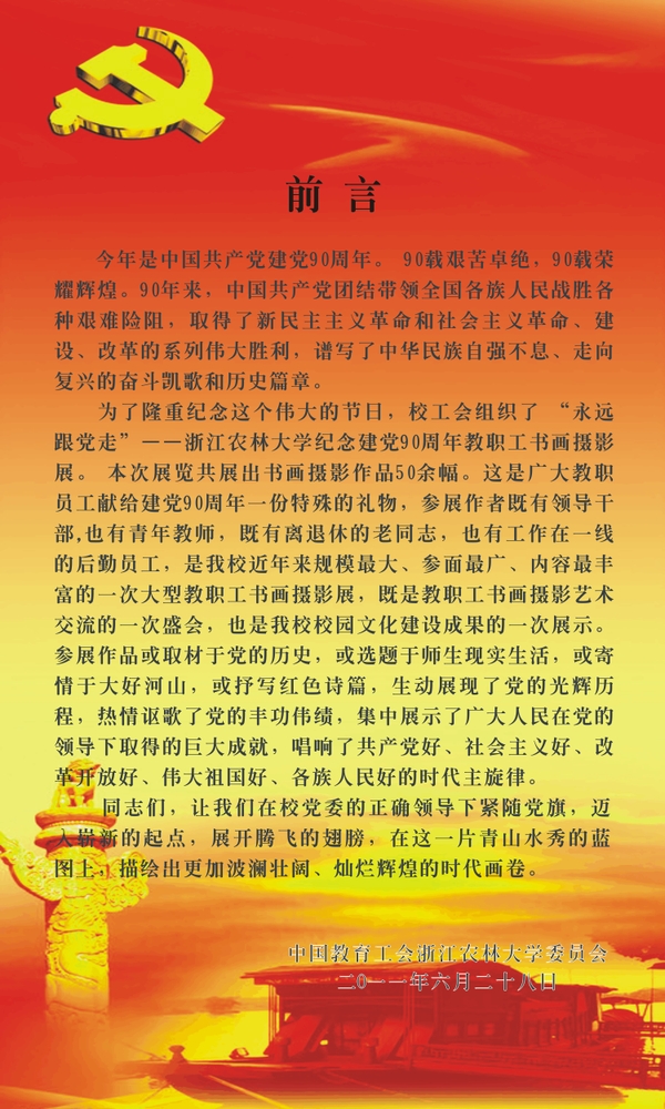 展览名称:浙江农林大学庆祝建党90周年教职工书画摄影展