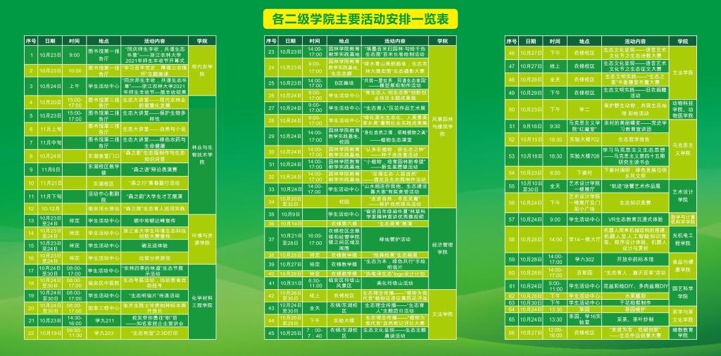 本届生态节包括启动仪式和系列活动,设置生态主题展和学院成果展。