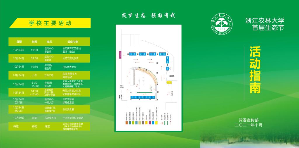 为进一步学习贯彻习近平生态文明思想,深入贯彻落实学校第三次党代会精神,根据《浙江农林大学首届生态节活动方案》(浙农林大党〔2021〕72号)相关要求,结合学校实际,特举办学校首届生态节,并举行启动仪式。