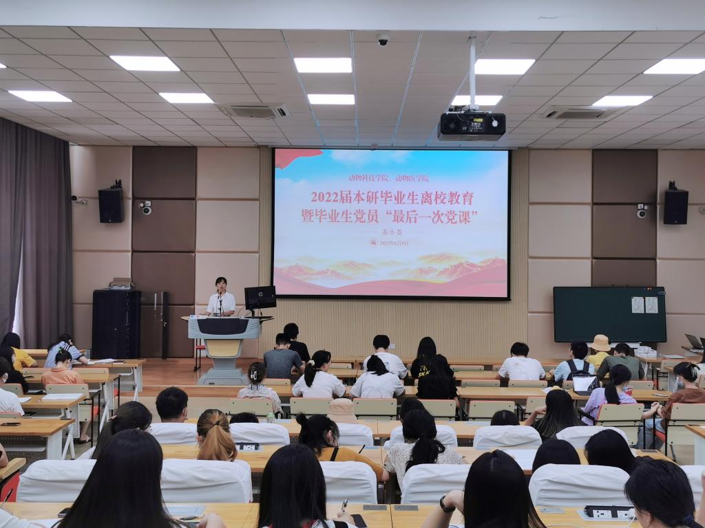 为切实做好毕业生离校教育与服务工作,6月10日,动科动医学院组织开展2022届毕业生离校教育暨毕业班党员“最后一次党课”活动,落实学校会议精神,为毕业生们详细梳理毕业离校工作流程与相关要求。