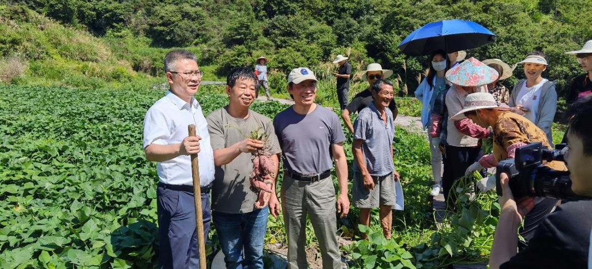 在莲都仙渡乡南源村的小香薯基地,我校科技特派员带领我校农学院的研学团队与莲都区委副书记王国锋进行交流,就该乡甘薯产业发展、农民增收,革命老区乡村振兴等方面,开展了一次田间地头间的现场研讨会。科技特派员还为当地特色的“甘薯公园”项目提供技术支持,助力打响仙渡乡甘薯品牌,帮助全乡实现共同富裕。