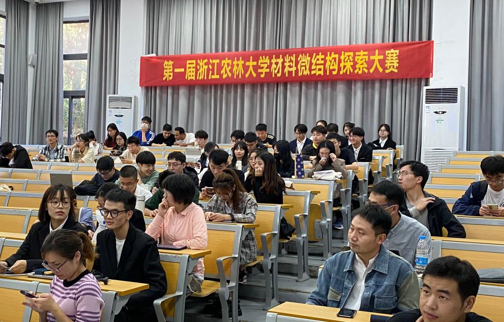 2022年11月12日下午,由化学与材料工程学院主办的第一届浙江农林大学材料微结构探索大赛决赛答辩会在东湖校区教1楼204举行。本次大赛以“探索微观结构,揭示魅力之源”为主题,旨在培养和提高大学生专业知识技能及人文艺术素养。