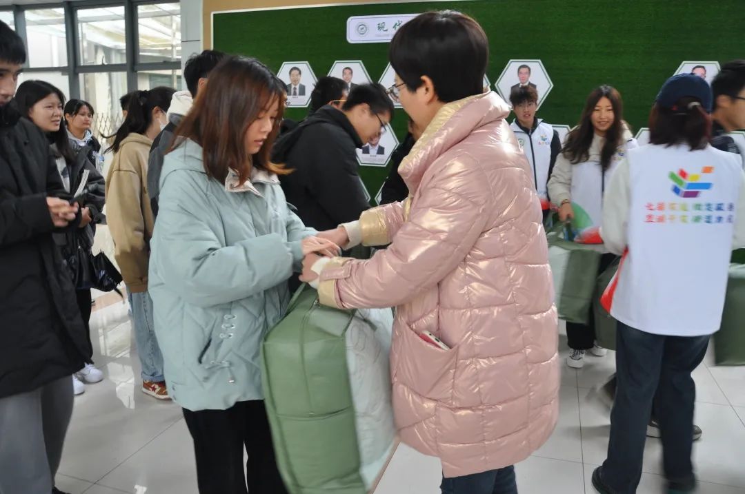 随后,农学院领导与辅导员一起为同学们送上了御寒的棉被、保温杯等,帮助同学们抵御冬日的寒冷。面对学院的关怀和老师的殷切期盼,同学们纷纷表达了感谢。