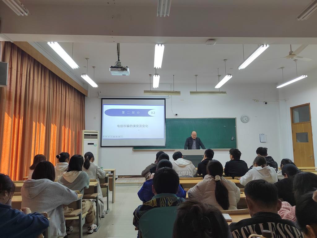 各班班主任从“什么是电信诈骗、电信诈骗的演变及变化、常见的电信诈骗、当代大学生受诈骗现状、如何防范电信诈骗”等五方面做了详尽介绍。诈骗不仅与我们的生活息息相关,而且它屡次发生在同学们身上,通过介绍大学生上当受骗的真实案例,结合播放预防电信诈骗科普视频,提高同学们的防骗意识。
